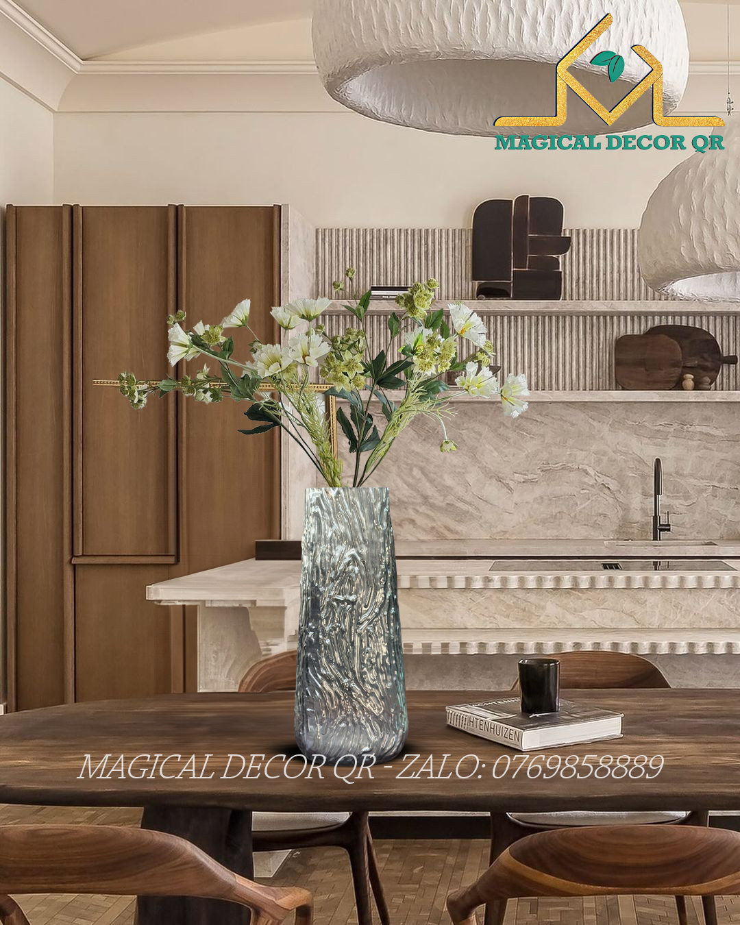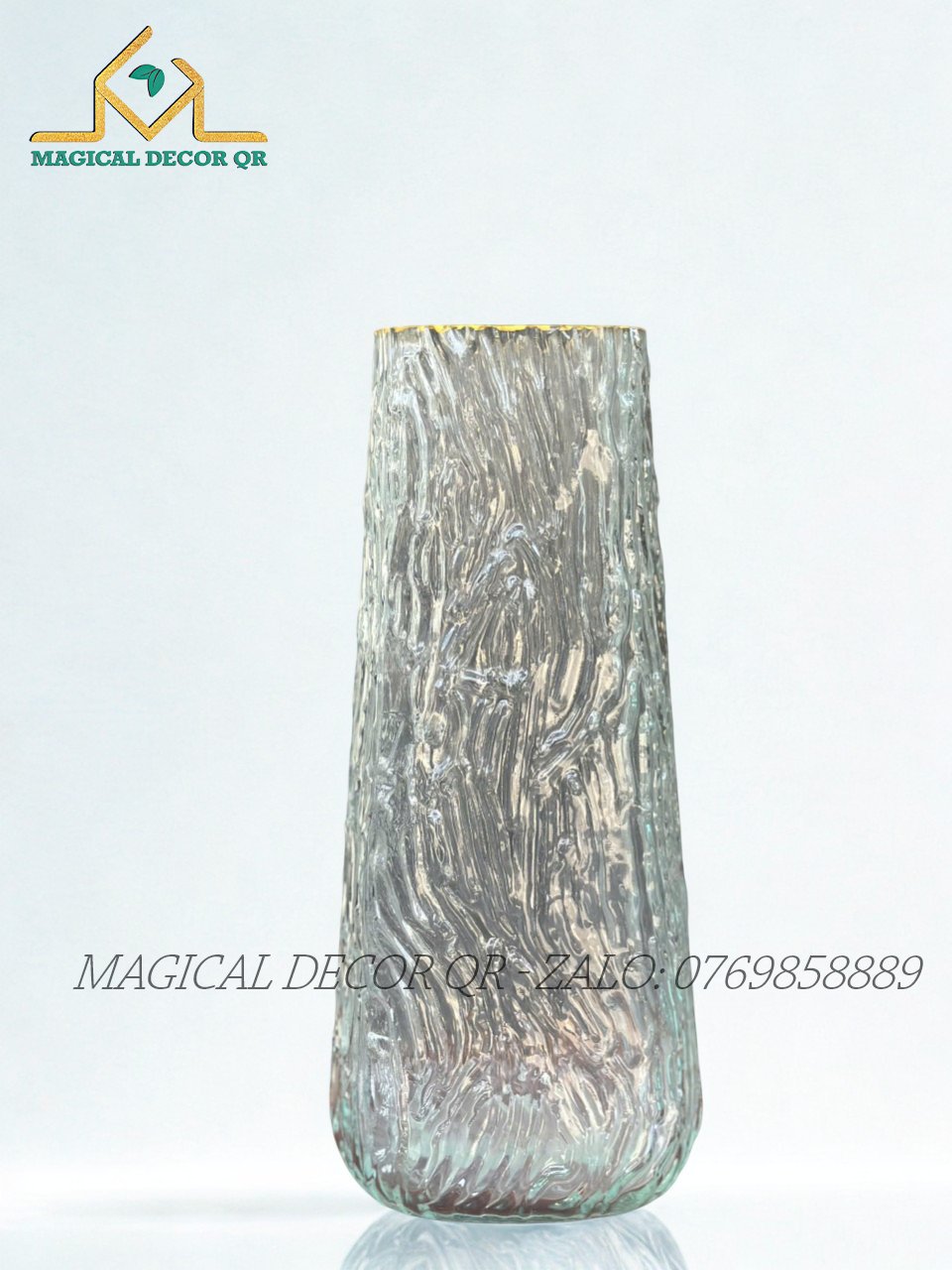 Bình thủy tinh nghệ thuật là sự giao thoa hoàn hảo giữa vẻ đẹp tự nhiên và tinh hoa thiết kế hiện đại. Với bề mặt họa tiết mô phỏng vân gỗ độc đáo, tạo hiệu ứng thị giác chân thực, sản phẩm mang lại cảm giác gần gũi mà vẫn toát lên nét thanh lịch, mới mẻ.