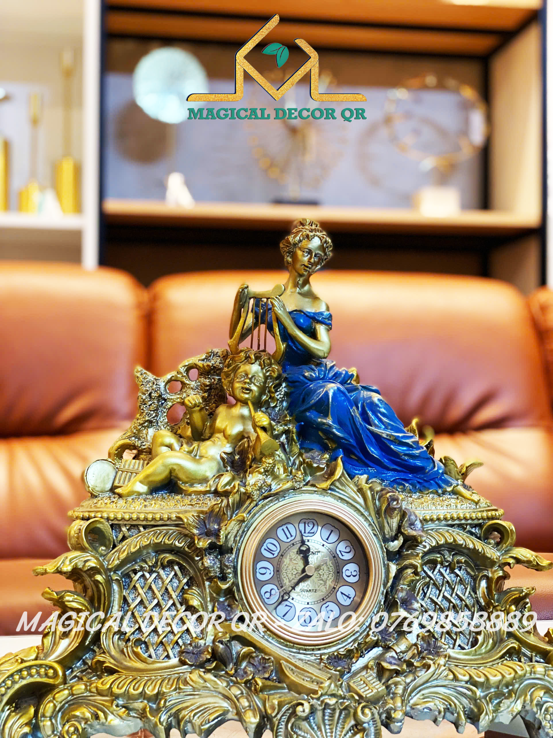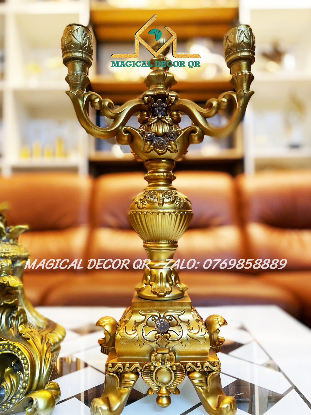 Tượng Nữ Thần Kèm Giá Nến là sự kết hợp tinh tế giữa giá trị nghệ thuật cổ điển và công năng trang trí cao cấp cho không gian sống. Lấy cảm hứng từ phong cách hoàng gia châu Âu, bộ sản phẩm nổi bật với tượng nữ thần uyển chuyển, kết hợp đồng hồ cổ điển và cặp giá nến chạm khắc tinh xảo. Tổng thể mang lại vẻ đẹp sang trọng, quyền quý, tạo điểm nhấn đẳng cấp cho mọi không gian.
