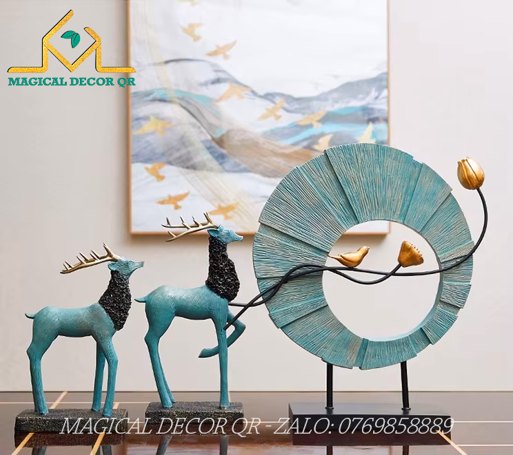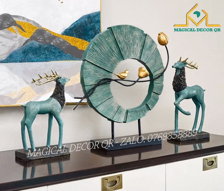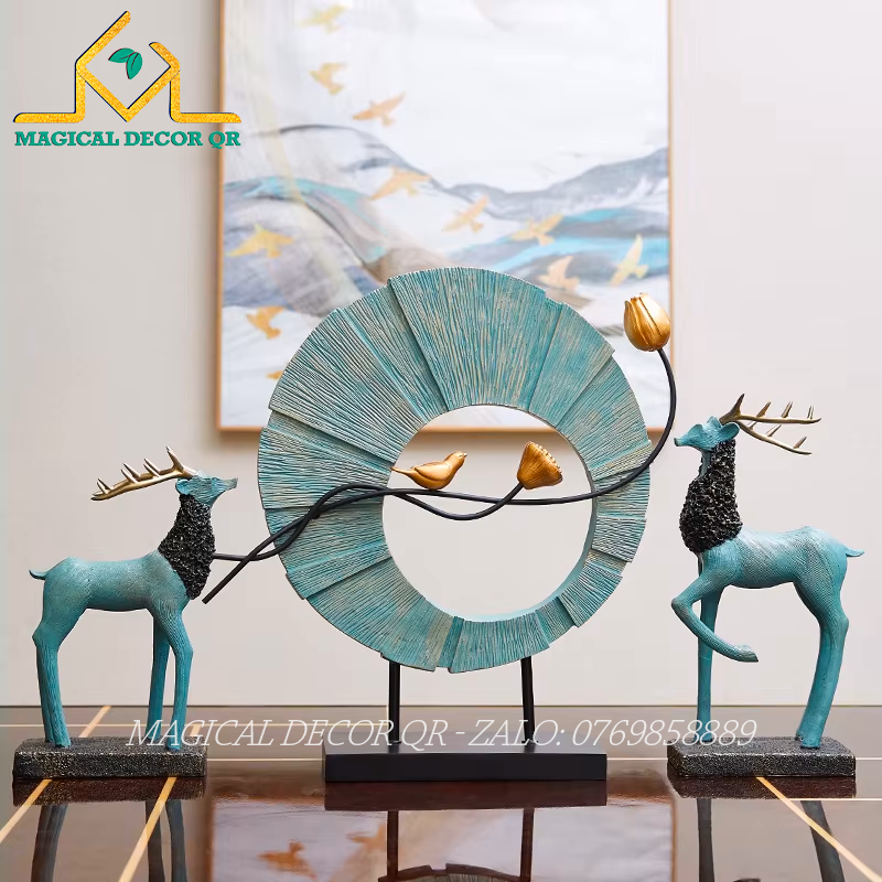 Set Vòng Tròn Hươu Xanh – tác phẩm decor mang phong cách Bắc Âu hiện đại, tinh tế. Thiết kế vòng tròn vân gỗ độc đáo, kết hợp cặp hươu xanh ngọc lục bảo, điểm xuyết cành chim vàng đồng bay lượn, tạo bố cục mềm mại – sang trọng. Chất liệu nhựa cao cấp bền đẹp, chi tiết tinh xảo, màu sắc thanh lịch, gợi nét gần gũi thiên nhiên. Hươu là biểu tượng trường thọ, tài lộc, may mắn. Vòng tròn gắn liền với sự trọn vẹn, viên mãn, cành chim mang đến hơi thở thiên nhiên nhẹ nhàng.