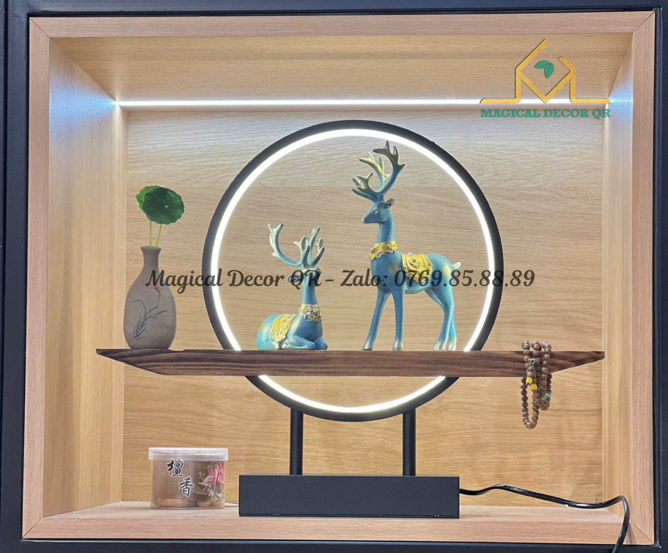 Vòng Phát Sáng Hươu Xanh là sự kết hợp tinh tế giữa nghệ thuật điêu khắc hiện đại và ánh sáng đèn LED sang trọng. Lấy cảm hứng từ hình tượng hươu xanh – biểu tượng của may mắn, trường thọ và tài lộc – sản phẩm mang đến không gian ấm áp, an yên. Thiết kế vòng tròn phát sáng tôn lên vẻ đẹp của cặp hươu, vừa là đèn decor vừa như một tác phẩm nghệ thuật thanh thoát.